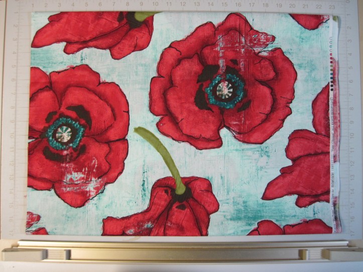 However, I haven’t a clue how to use it in a pieced quilt. The print is so large that if I tried to use in 2″ or 3″ squares or HSTs, I’d lose the print entirely.