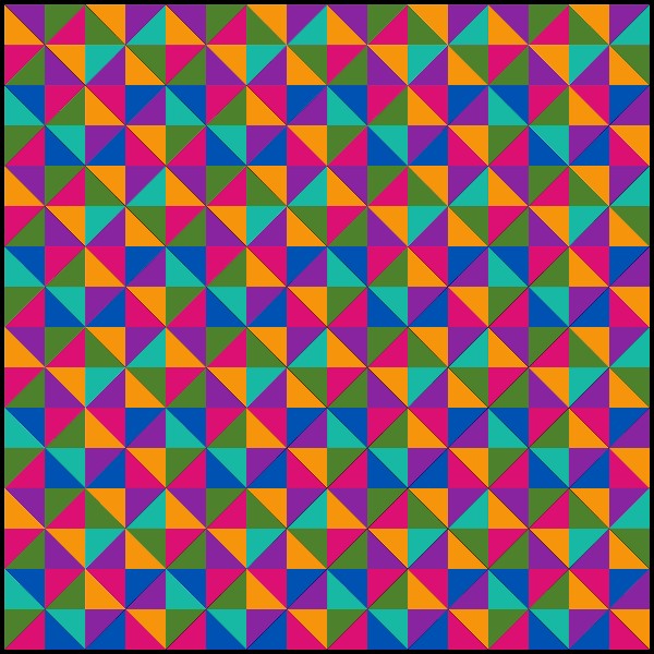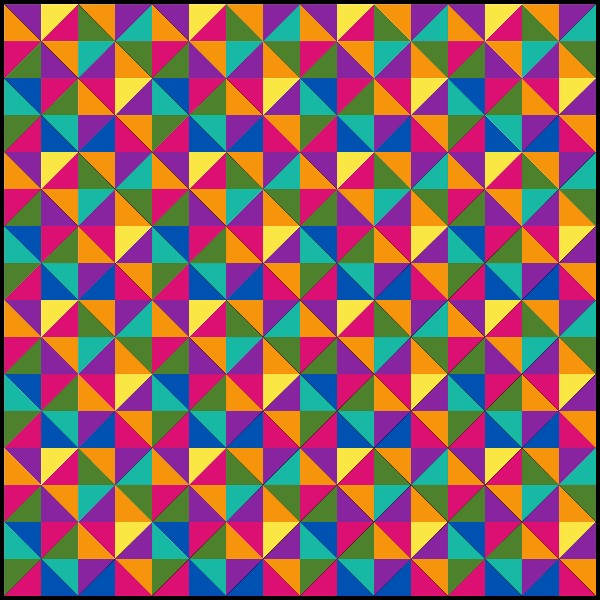 … you can see a marked difference in the value of the yellow compared to the others. Here’s an EQ7 illustration of a quilt using similar colors, first without the yellow: