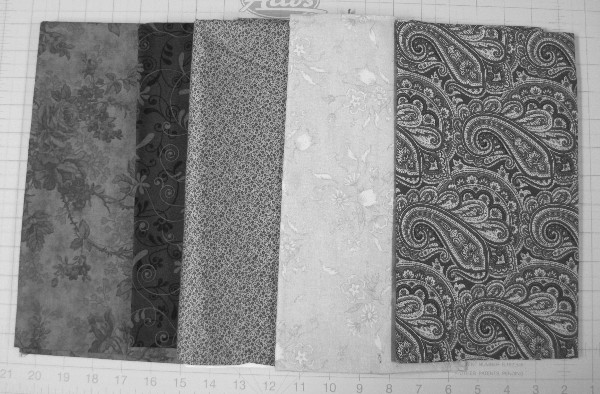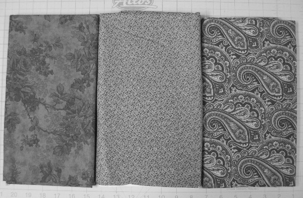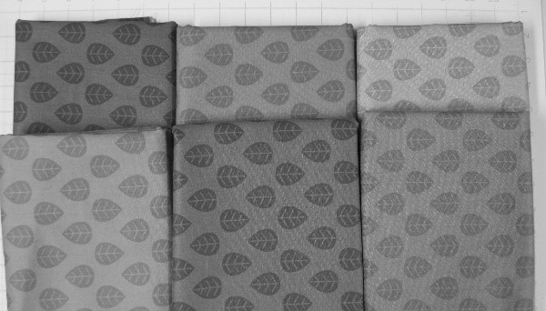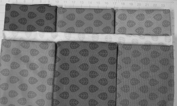 Value can be difficult to see when you’re comparing two different color fabrics. You can buy red and green transparent plastic tools that help you see the relative value, but you can also use a digital camera that has a black and white setting, by editing a digital photo to black and white, or by printing a photo in black and white.