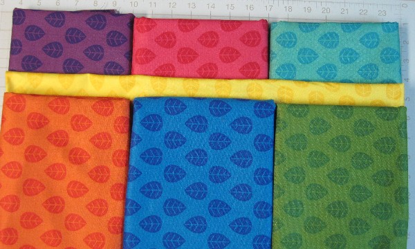 I always suggest buying the best quality fabric that you can afford. That means different things to different people, and I recognize that the economy being the way it is certainly affects our decisions. I’ve found that JoAnn’s is pricing many of their quilting fabrics in the same ballpark or even higher than my local quilt shops. Of course, they regularly discount it as much as 30%. On the other hand, check the clearance shelves of your local quilt shop. It might mean choosing a fabric that isn’t “perfect” but that can be a good thing if it pushes you to work outside your comfort zone. Online fabric stores also regularly have clearance fabrics for prices that are easily in line with chain stores. I picked up some amazing “seconds” at Connecting Threads for less than $2.50 a yard (the bright leaf prints in the photos above), and I frankly can’t see what’s wrong with them.