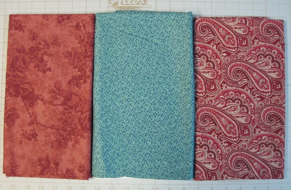 Looking at this group of fabrics, you might think you have variation in values. The aqua is obviously very different from the two reds.