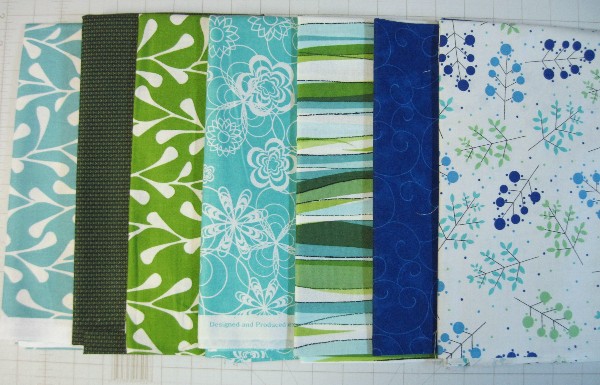 I admit, I prefer quilt shop quality fabrics. I trust it not to shrink excessively, not to bleed, and not to wear too quickly. Notice, though, that I said quilt shop “quality” fabrics. That doesn’t mean I buy exclusively name brands. I’ve found a few winners at Hobby Lobby and even JoAnn’s. The green and blue prints above are from JoAnn’s, for example. (Although I’m peeved at my local store for sticking the quilting cottons in a corner behind shelves without enough room for two carts to pass. But I digress.) My decision is based on three things – clarity, texture and weight. If the printing is sloppy so the colors overlap and create a muddy look, I won’t buy it no matter how inexpensive it is, because I think it looks cheap. The texture must be smooth and fine, and it must have a substantial weight, not feel flimsy or coarse. If I can see through it, I don’t buy it. This is based on regular quilting cotton fabrics, of course. There are a number of lighter weight fabrics that are becoming quite popular. I haven’t worked with them, so I can’t give an opinion.
