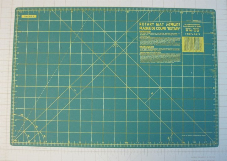 Self-healing mat: Get as big a mat as you can justify, and get a tiny one to put next to your sewing machine for trimming. I’d recommend one at least 18″ x 24″, or 24″ x 36″ if you can manage it. You need to be able to cut fabric from selvage to selvage, and it’s best if you can do it without folding it again. That’s about 22″. I also have a 6″ x 8″ mat for trimming block components (like half square triangles). The rotating ones are nifty, but unnecessary, and far too expensive. Again, Olfa is a good brand, but any mat of the same material is pretty much the same. Just a tip – I don’t like to use the gridded side of the mat – I use the plain side, and rely on my ruler for measuring.