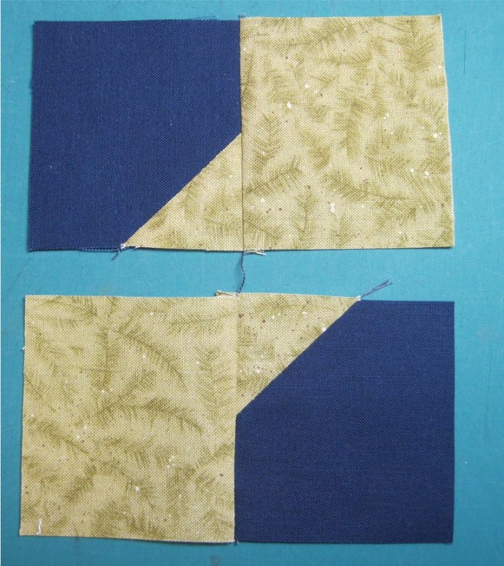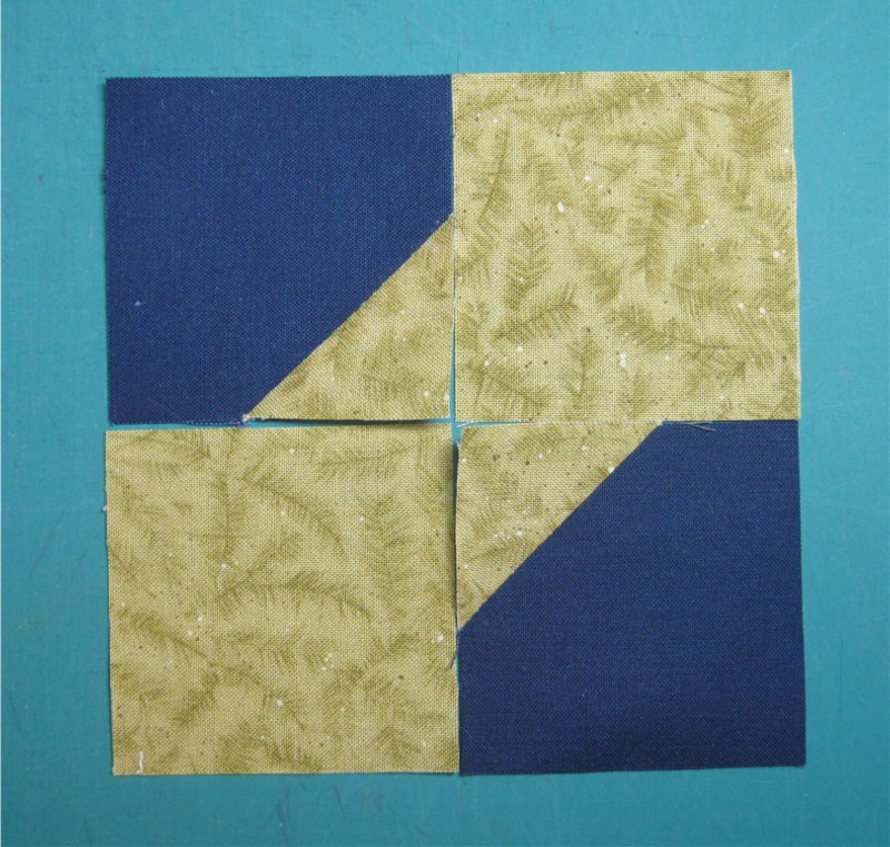 Bowties are essentially a four patch, but two of the patches have one little corner sewn on them. It’s done just like we did with the Snowball units.
