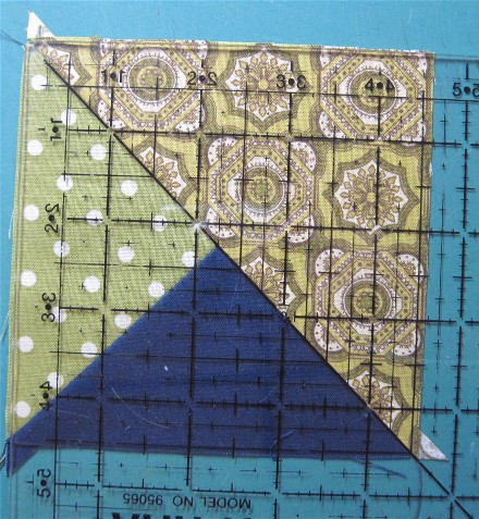 Sew following instructions for the QST unit in this post, trim the excess fabric off, and press. You will NOT use the excess fabric.