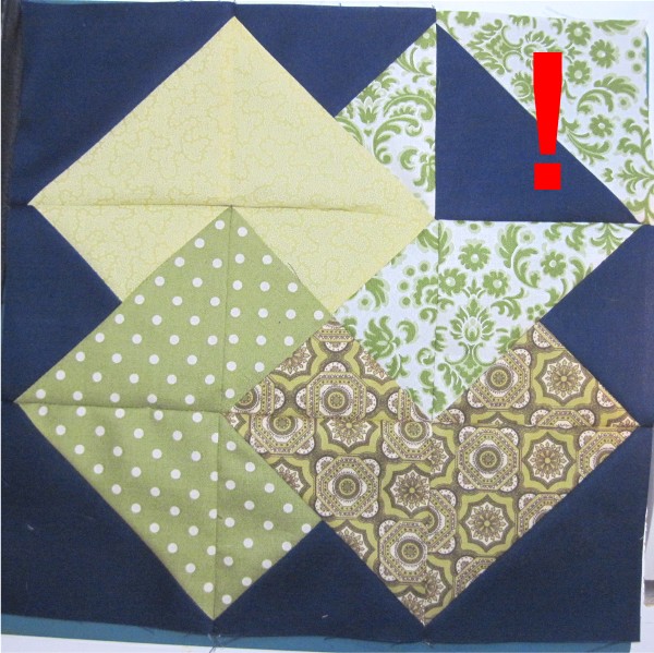 Yes, I cut five background squares by mistake. Actually, I made several mistakes in this block – I also started with 5″ squares and found out after I assembled my center QST that it was too small.