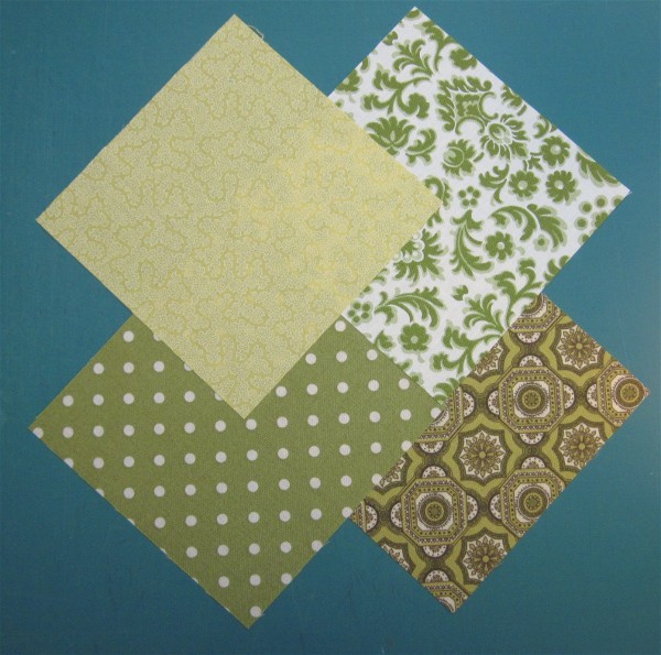 Lay out your four block fabrics to determine the placement within your block. Consider color, value and scale when arranging your fabrics.