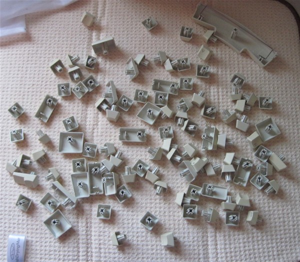LOL, isn’t that the way it goes – organize one space, and you itch to do some more. I haven’t yet set up the sewing room in the new place (horrors!), but I will now have the room to set up a better system for my stash (one entire WALL of this room is closet, and the room is 16 x 13) as well as room for a future machine quilting set up.
