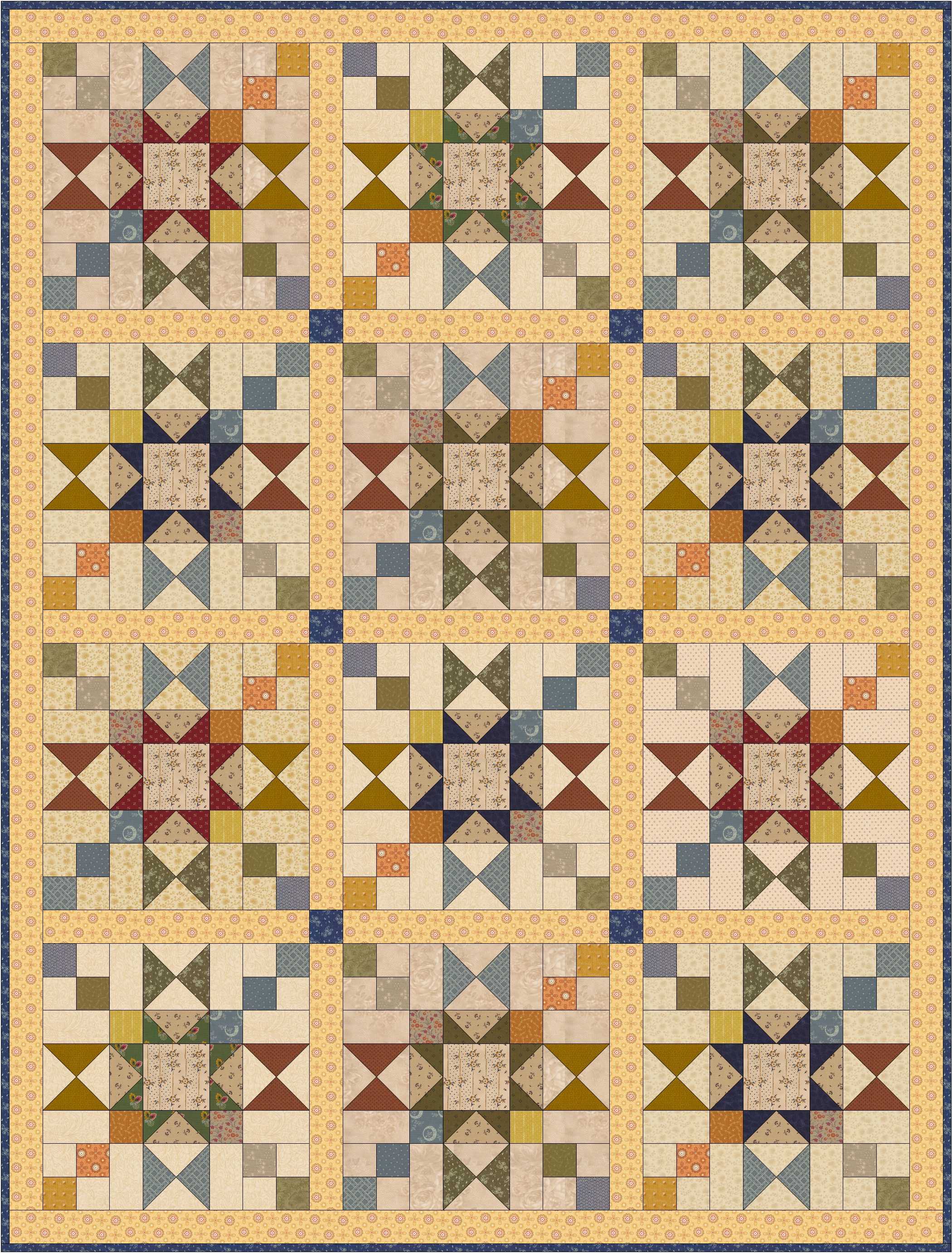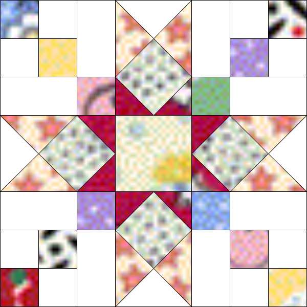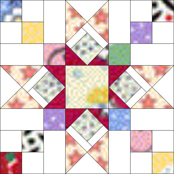 It’s pretty traditional, but the large (16″) block could easily accommodate more contemporary fabrics. Here are some illustrations: